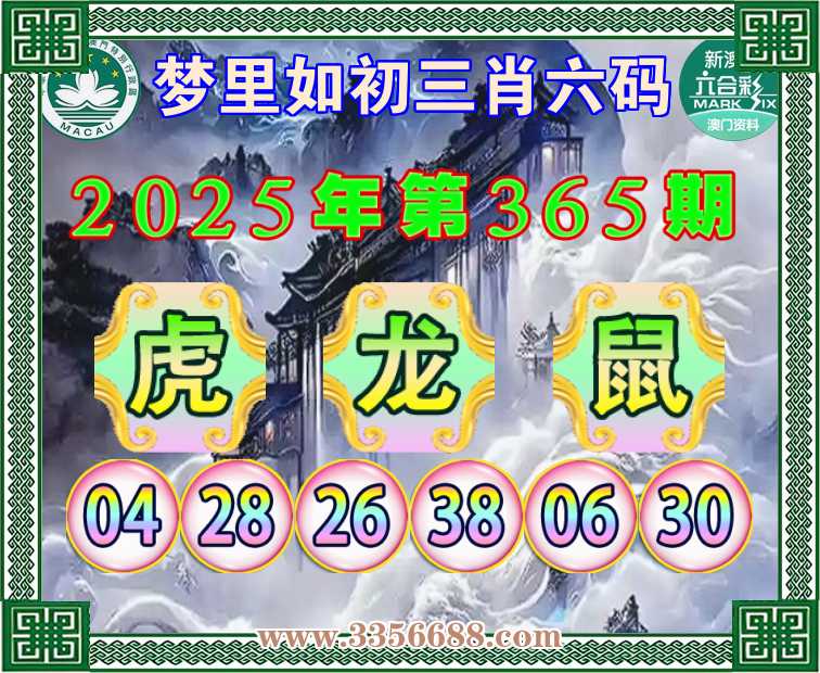 365期:『梦里如初』 🪢三肖六码🪢【虎鼠】开:龙26准上榜高手