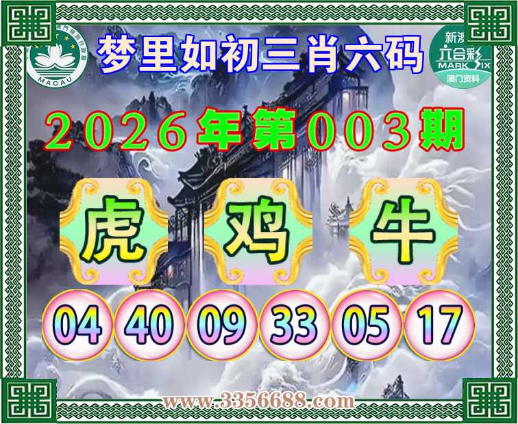 003期:『梦里如初』 🪢三肖六码🪢【虎牛】开:鸡09准上榜高手