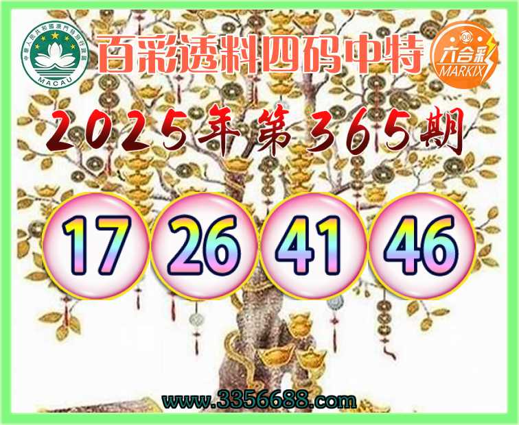 365期: 百彩透料 🀄四码中特🀄【17.26.41.46】开:26准上榜高手