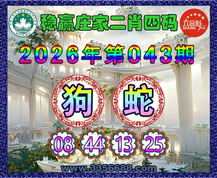 043期: 🪢『稳赢庄家』 🪢二肖四码🪢【狗】【08.44.13.25】开:蛇13准上榜高手