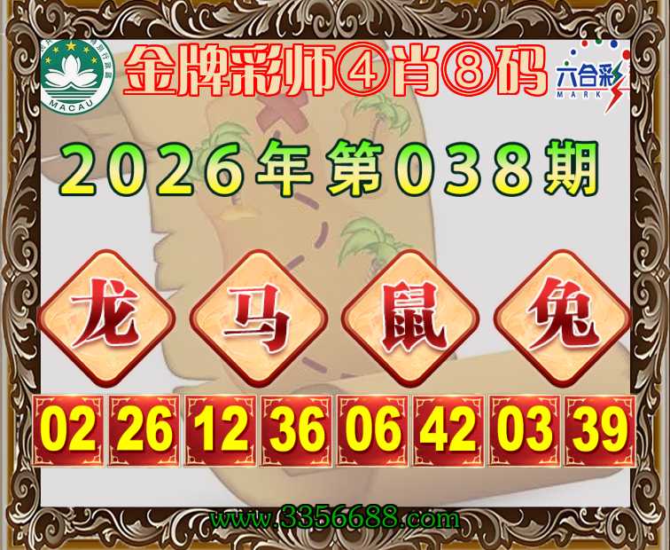 038期:《金牌彩师》 🧩④肖⑧码🧩【龙马兔】开:鼠42准上榜高手