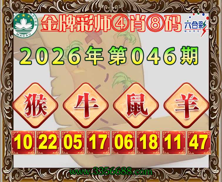 046期:《金牌彩师》 🧩④肖⑧码🧩【猴牛鼠羊】开:兔03